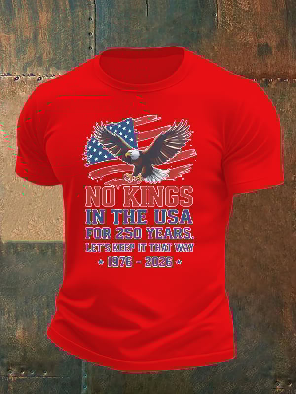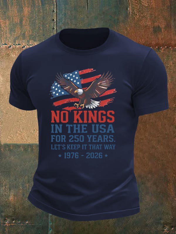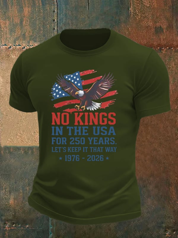 Men's No Kings USA Patriotic Tee ,250 Years of Democracy printed T-shirt