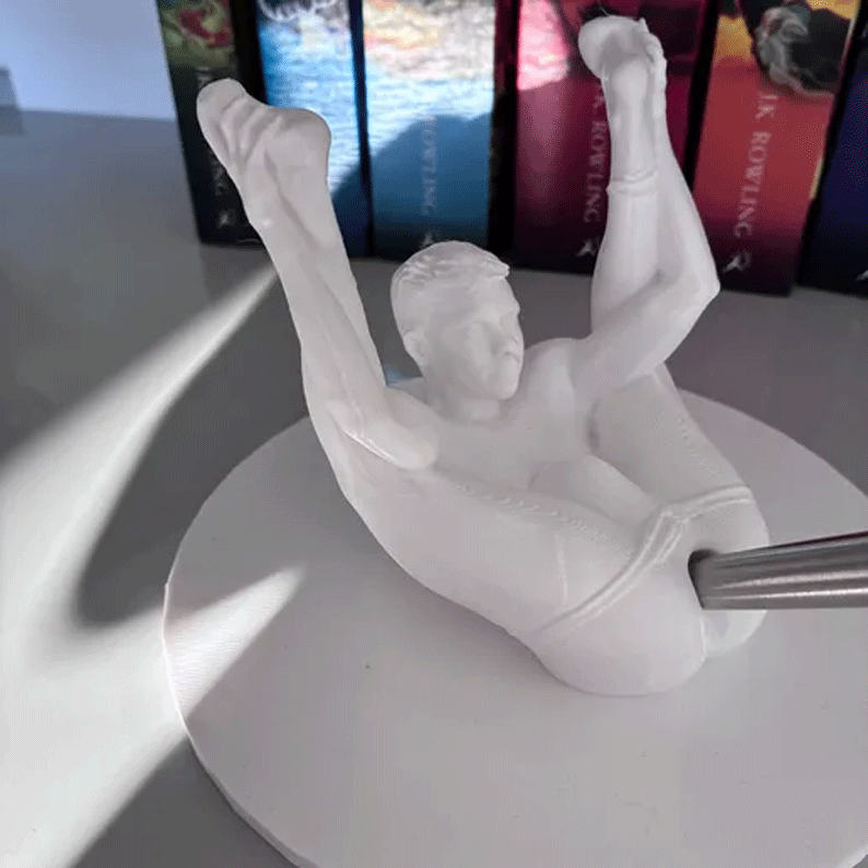 This gay boy figure isn't just flexible, he’s dedicated to keeping your favorite pen exactly where you need it.